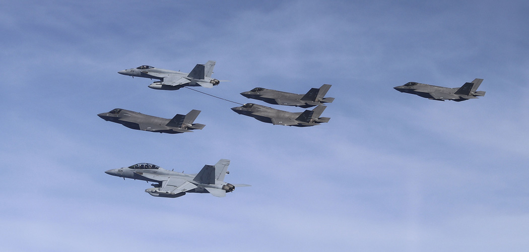 F-35 Unites! Four F-35Cs from Strike Fight Squadron (VFA) 147 participated in joint interoperability exercises on August 26 over the Philippine Sea with the HMS Queen Elizabeth Carrier Strike Group. The aircraft conducted missions to validate joint integration techniques, tactics, and procedures; including mid-air refueling.This is the first time that USS Carl Vinson and the U.K. Carrier Strike Group have operated together as well as the first training opportunity the U.K. had to engage with the F-35C. Integrating U.K. and U.S. Marine Corps F-35Bs into a flight with U.S. Navy F-35Cs continues to reinforce the tactical flexibility and interoperability of the F-35. (Read more...)